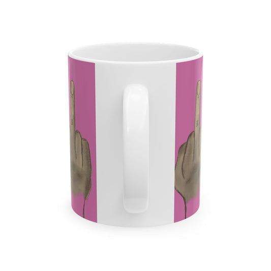 Funny Ceramic Mug with Middle Finger Design - 11oz - Real coffee &/or room for 'go juice' -